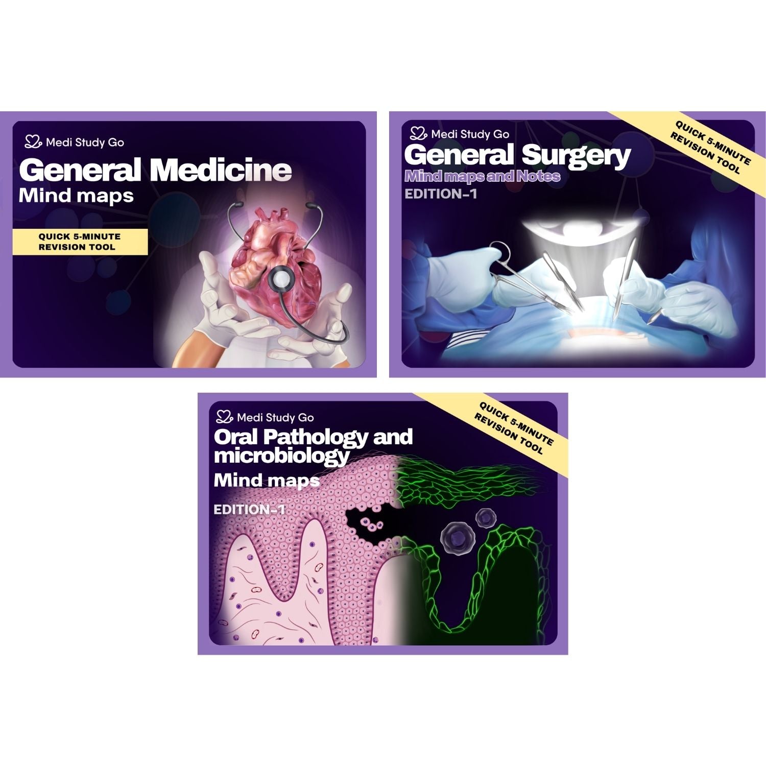 Study using the physical books for in-depth learning and revise key medical, surgical, and oral pathology topics anytime with the Medi Study Go app. Perfect for 5-minute focused revision sessions before exams and viva practice.